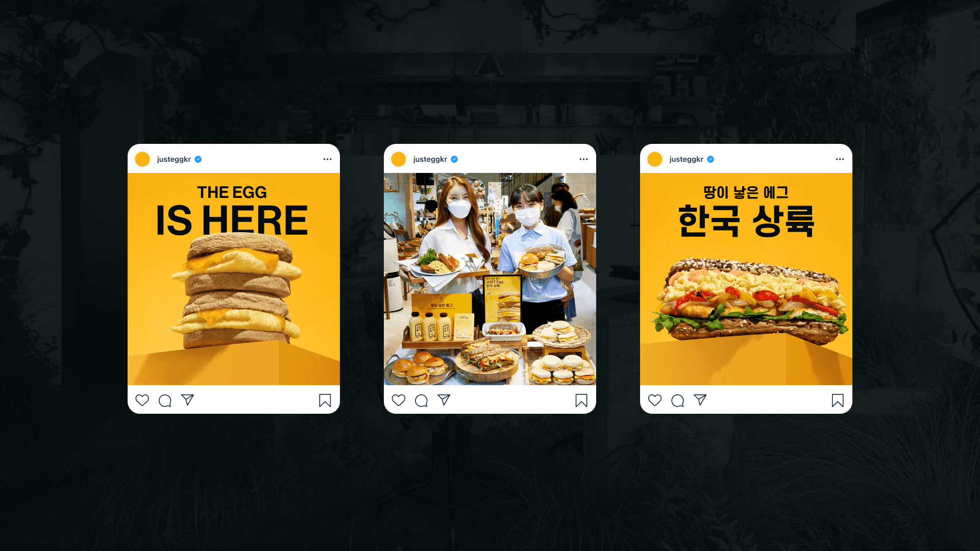 We tapped into the insight that South Koreans are always on the lookout for ways to treat their bodies better and make more sustainable choices. Led by Korean Creative Director Haehyun Park, the Monks team developed a localised communication strategy with the new slogan "땅이 낳은 에그" (Egg born from the earth). We rolled out yolk-y gold print and social assets showcasing our product in mouth-watering breakfast muffins and sandwiches, captured in heroic poses to herald in a food revolution.